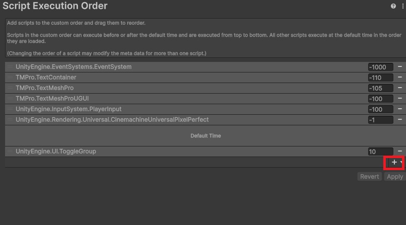 실행 순서를 조정하지 않은 스크립트들은 [DefaultTime] 슬롯에서 실행됩니다.